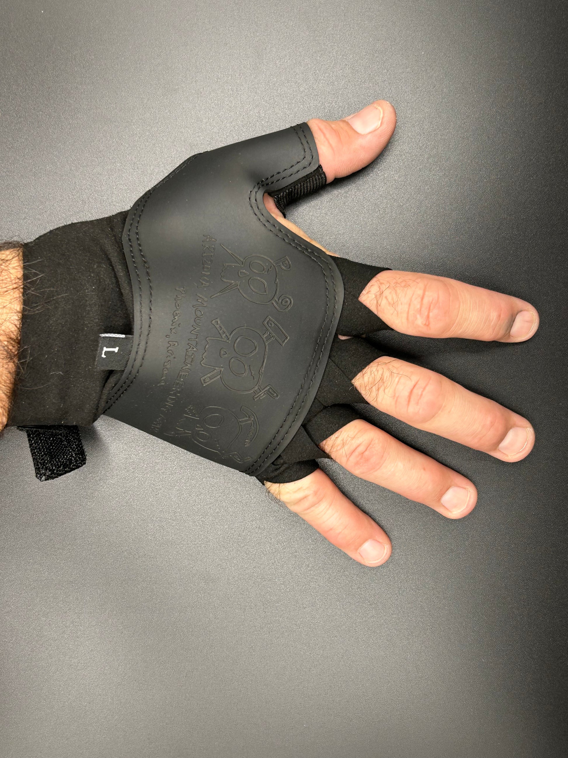 AMG presents our newest product the AMG Peanut-Butter and Jam Gloves. Our gloves feature full hand and thumb protection with a Velcro wrist strap and an elastic thumb to hold the gloves on securely and give them a “tape glove” feel. Our logo is also embedded in the sticky rubber which covers the majority of the outside of the gloves. The fingers are also ergonomic and fit the hands perfectly. We seriously think this is the best glove available on the market and have tried all the others! ☠️☠️☠️.
